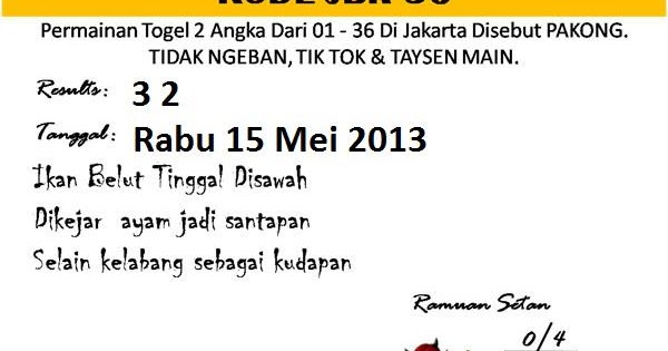JBR Blog Kode Pakong Hari Rabu 15 Mei 2013